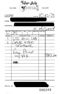 1979 receipt from the shop ... one of the early logos ... two from 1986. Submitted by Tim Rasmussen