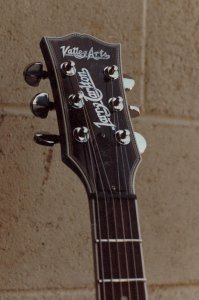 Here are the scanned photos of Carlton's Valley Arts 336. Gibson commissioned Valley Arts to make this as a prototype, but never followed through to add it to their line. This was roughly 1983. Larry first used it on the "Friends" LP. If my memory serves me right it has a mahogany back with a carved maple top. I don't recall if its semi-hollow like a 335. (probably is though) The body is slightly smaller than a 335 and slightly asymmetric. Interestingly enough, after Mike McGuire became the head honcho at the Gibson Custom Shop, you could order an ES-336 (starting in 1996). The ES-336 coincidently had a semi-hollow mahogany body with a carved maple top. And, it was slightly smaller than a 335. The ES-336 was discontinued in 1999. Now days you can order a CS-336 from the Custom Shop. The CS has features very similar to the ES-336 and the grandfather of them all the VA-336. Submitted by Bill Folwell ... THANKS BILL!!!