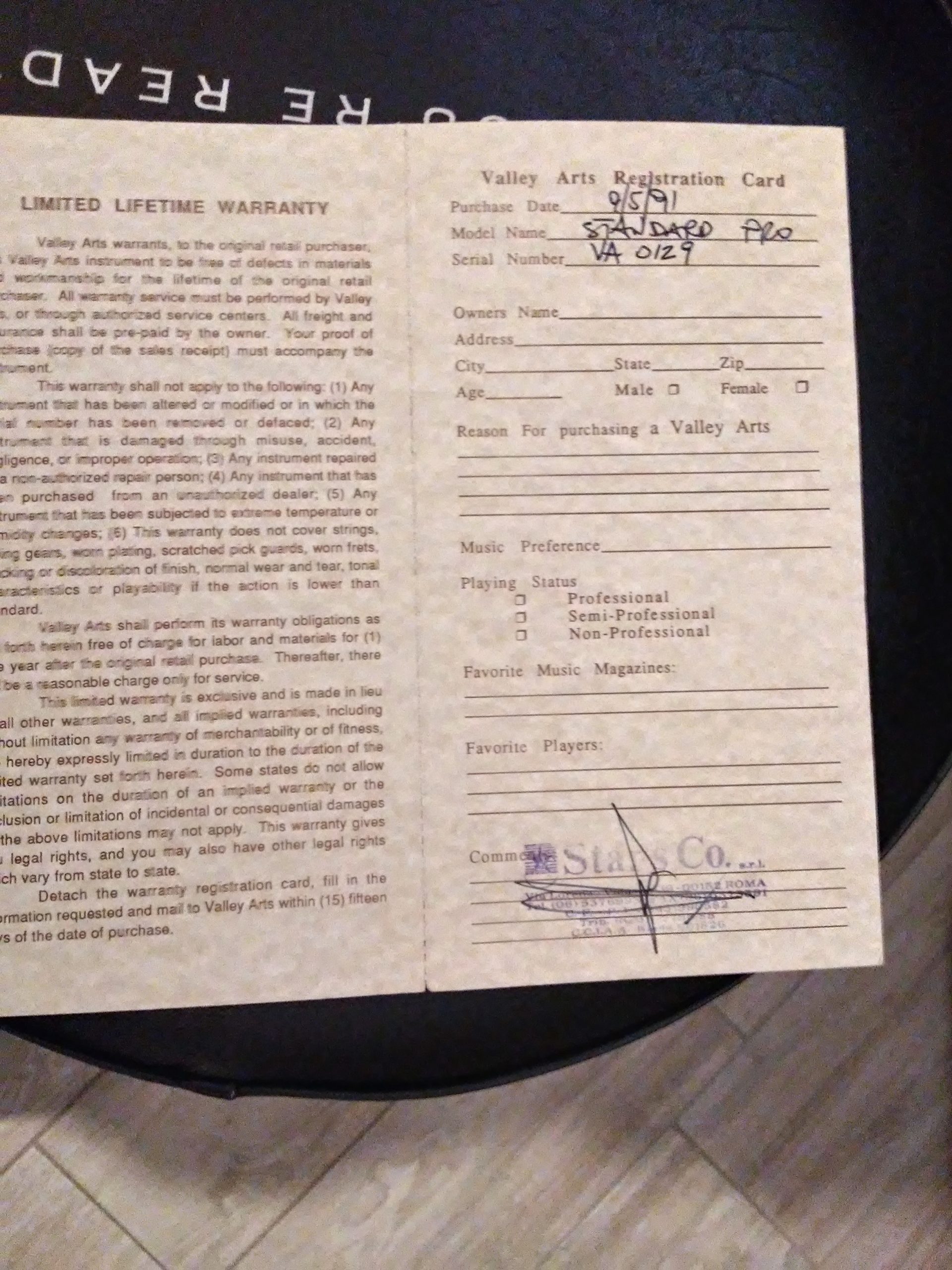 The instrument is in excellent condition and all original. Lightweight Maple Body, Maple Neck, and Rosewood Fingerboard Valley arts gotoh tuners and emg sa \ sa \ 85 pickup set. Precise and reliable kahler \ valley arts bridge. It also comes with original case and all accessories