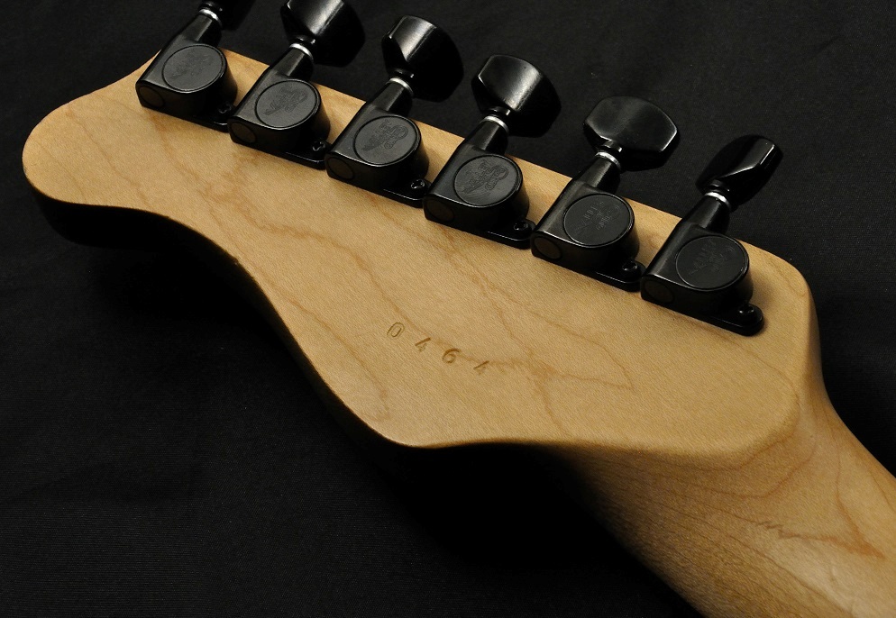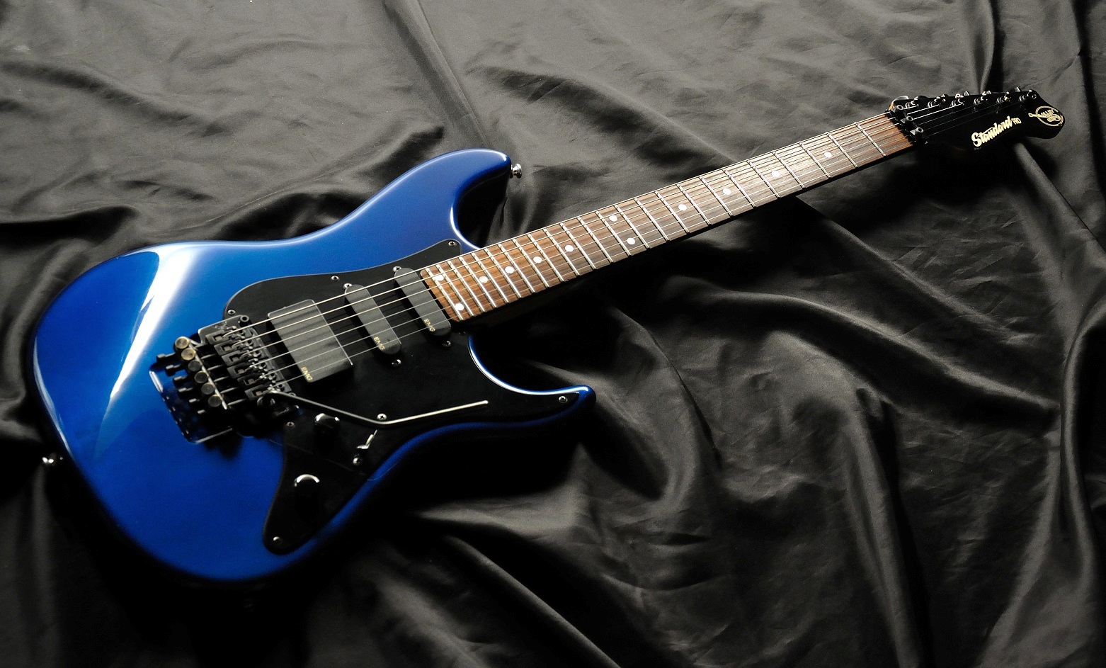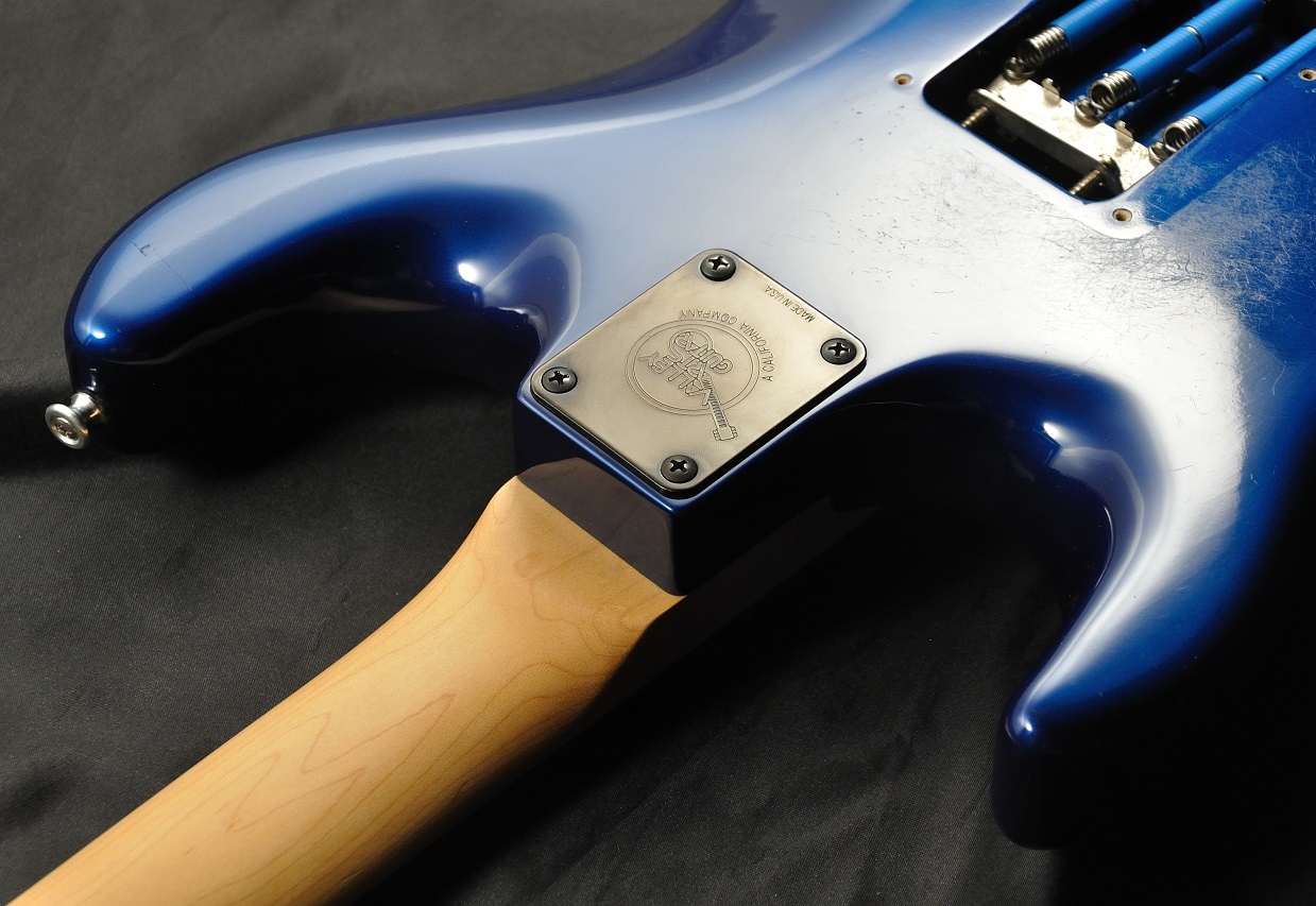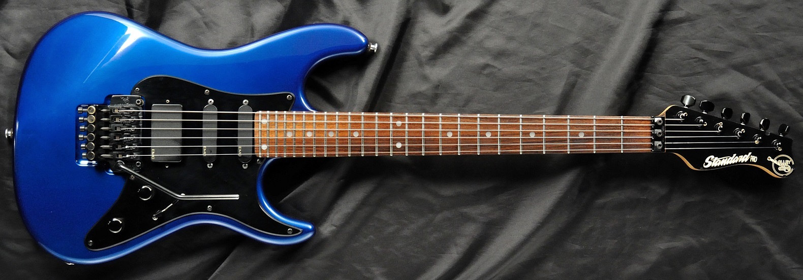 Trans blue, black hardware, Kahler Steeler bridge, Original EMG H/S/S IC SA/SA/85 pickups, full rewiring, stainless steel Jescar medium Jumbo frets, No load pot. Tone.