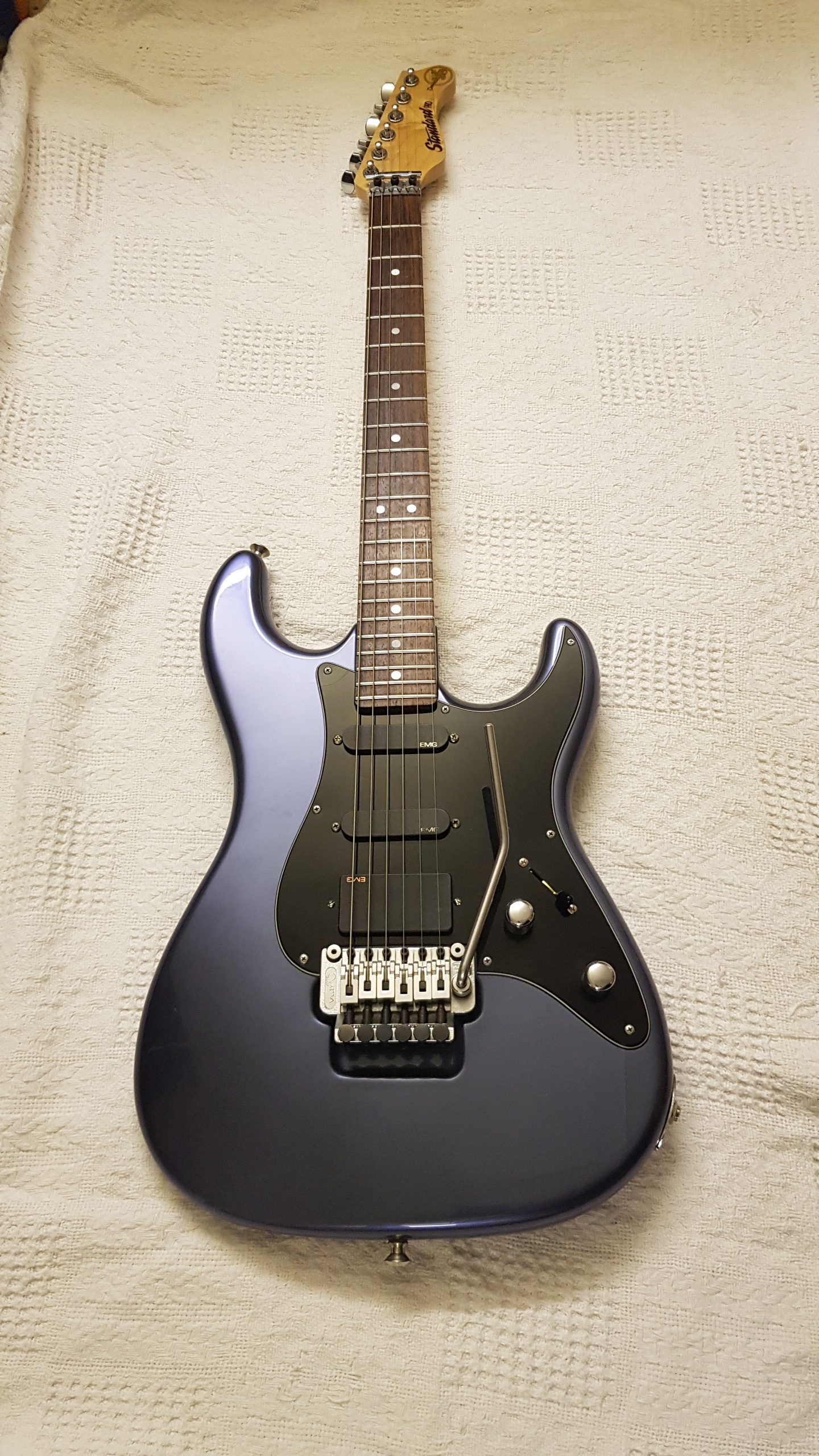 Pickups: Emg Sa/Sa/89 split coil on tone pot.