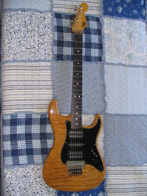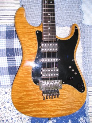 Original owner, Quilted maple body, Birdseye maple neck, Rosewood fingerboard, Floyd Rose locking system, 1 5/8 nut width, Anderson humbucker pickups, Three (3-way) toggle switches - each switch sets each pickup to humbucker, single coil or off. Push/Push Volume and Tone controls for setting pickups in and out of phase. Mike custom made this guitar for me when I was attending the Dick Grove School of Music, which at the time, was just up the street from Valley Arts.