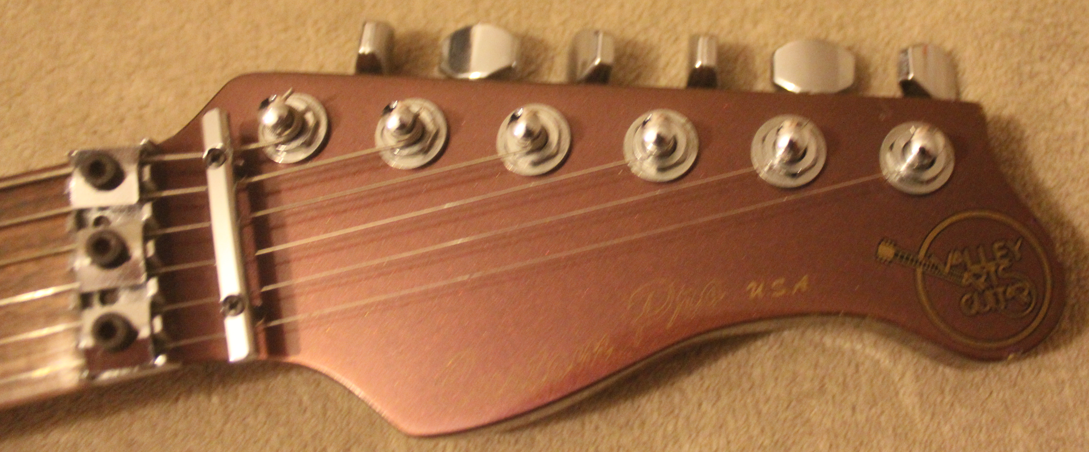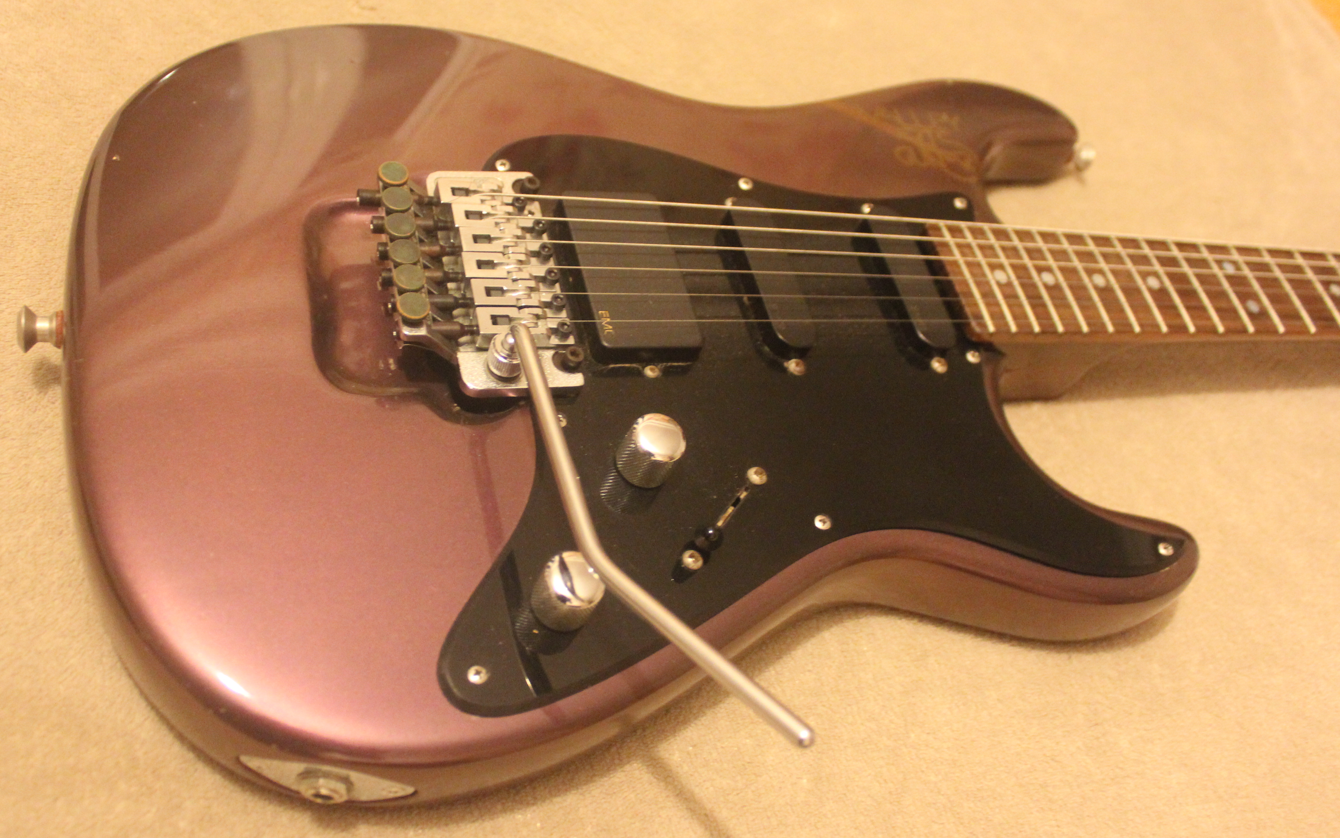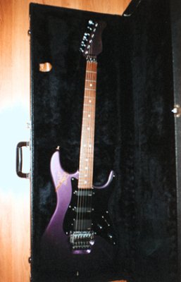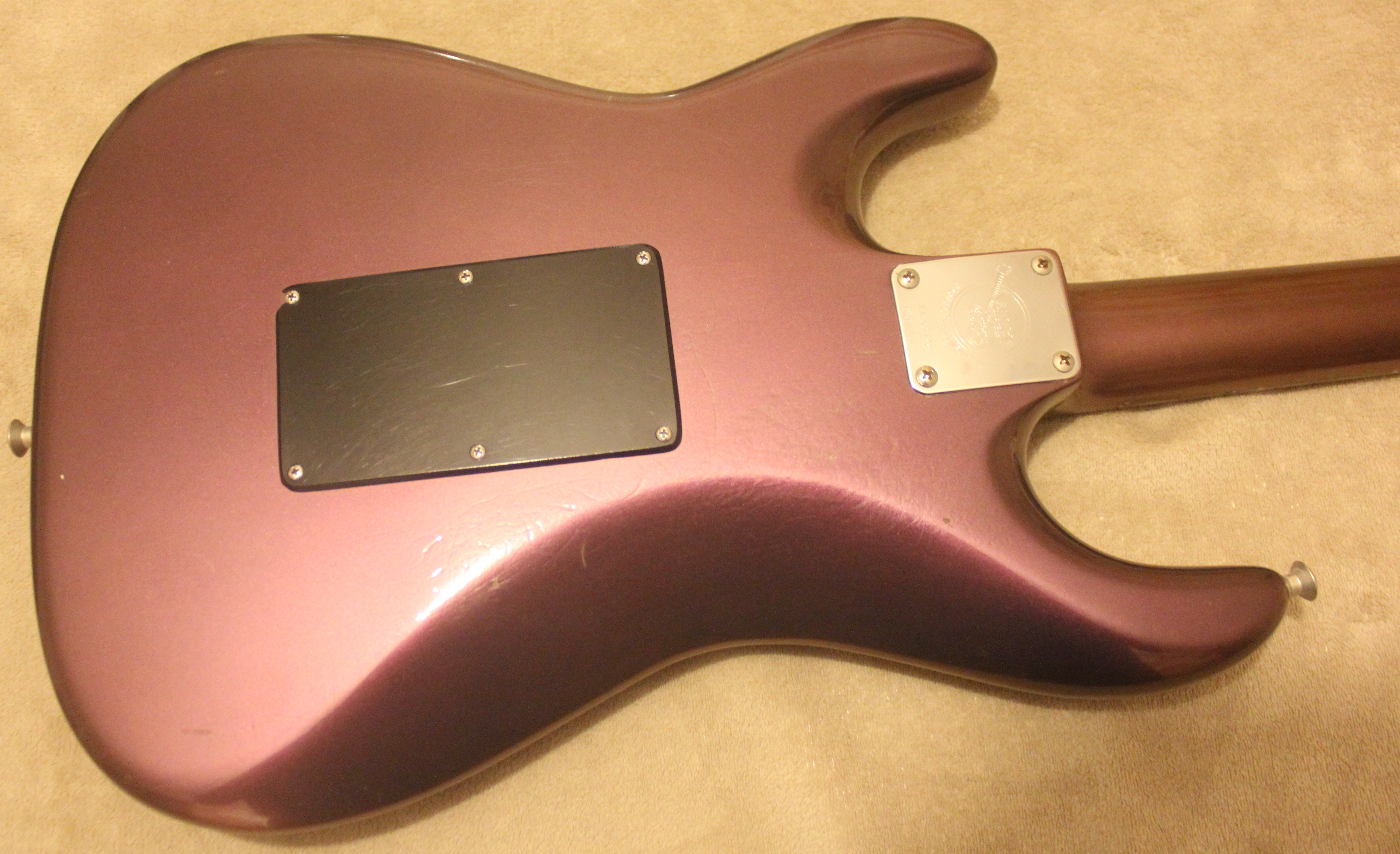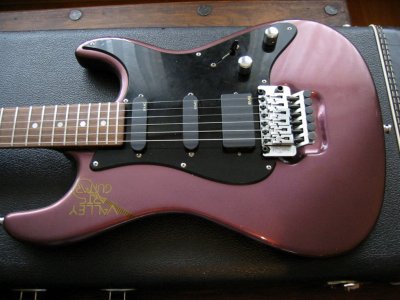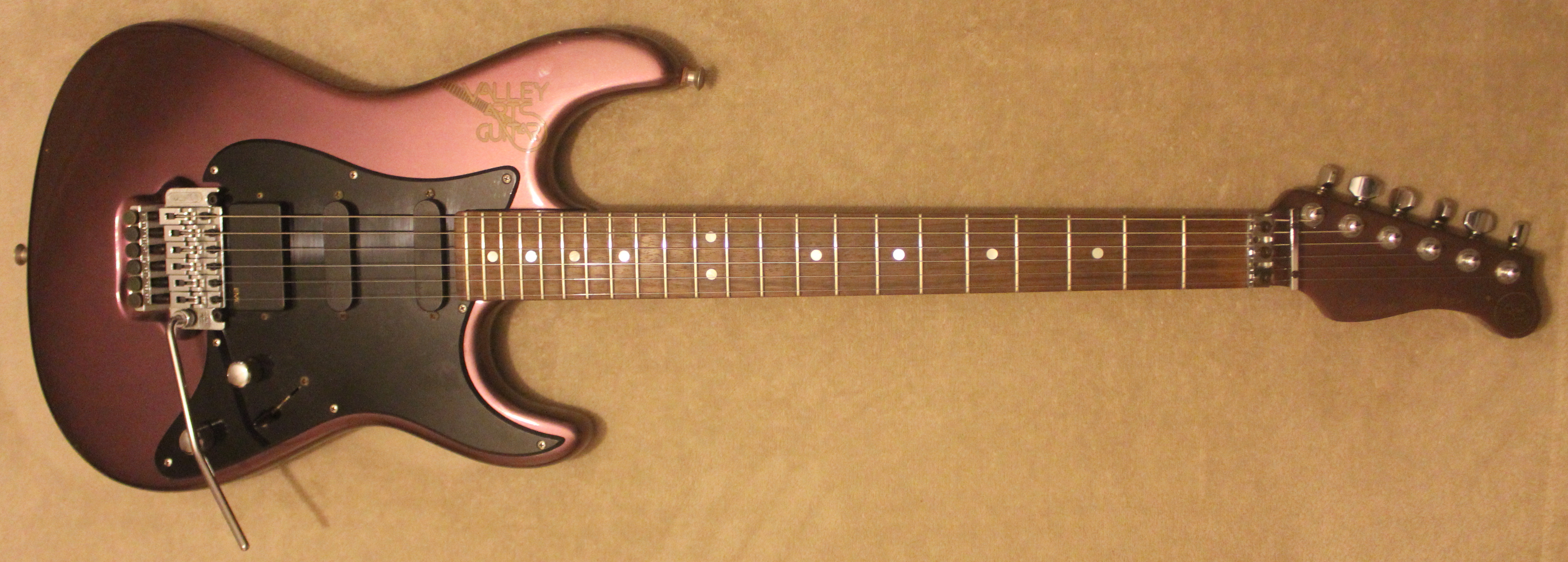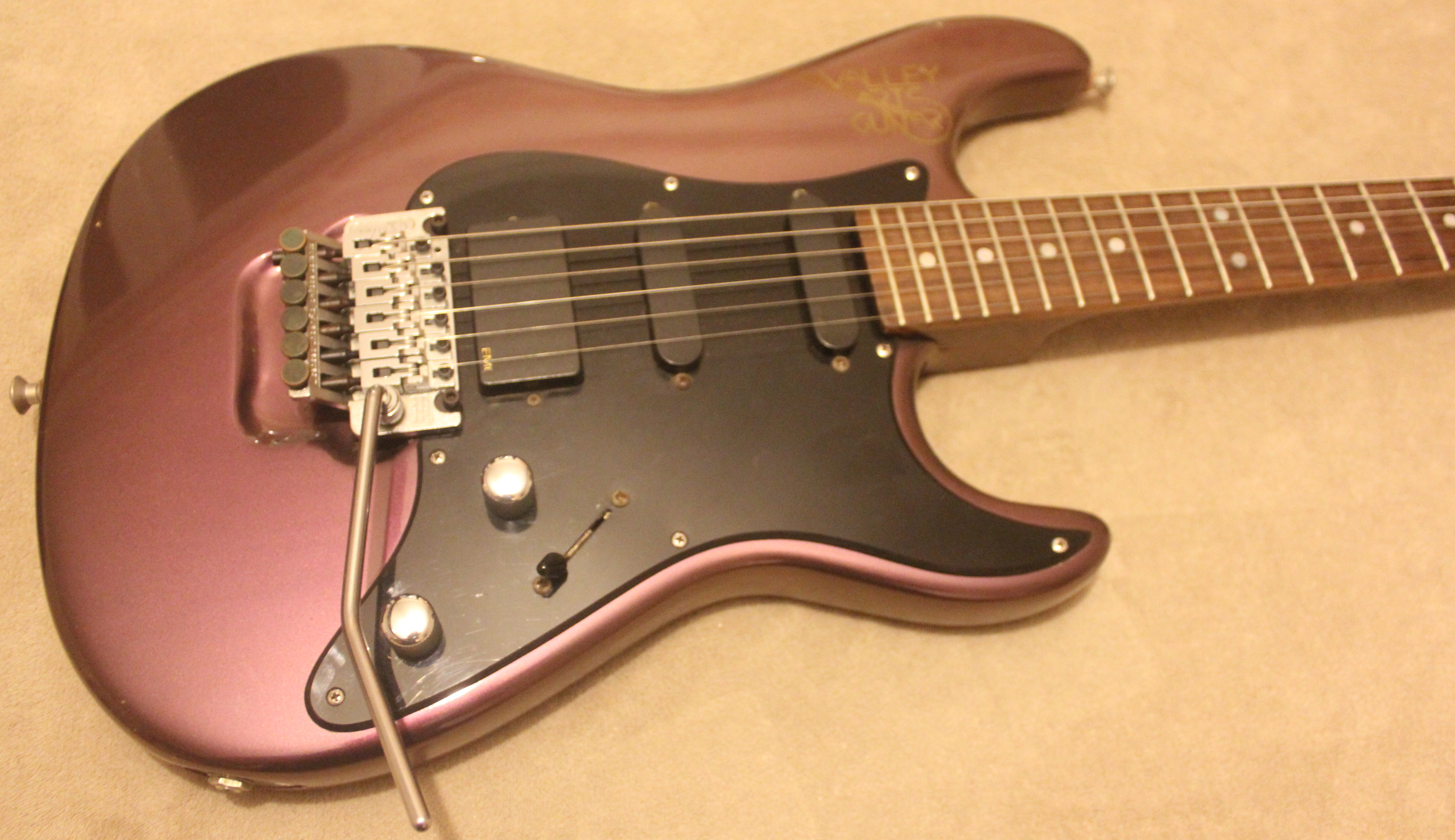 The guitar is all original; Purple with VA logo on the body; Chrome hardware; Schaller bridge (with VA logo),Schaller nut, VA machine heads, black pickguard.