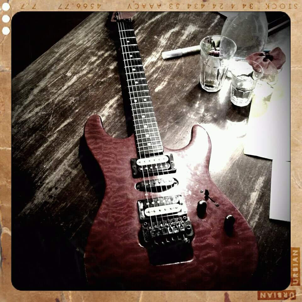 trans red quilt top, birdseye maple neck, ebony fretboard. Additionell info: ...probably one of the most heavely used va's featured in the registery :) Modifications: Pickups, Original pick-ups (Seymour Ducan) were at first replaced by EMG's. Nowadays i prefer the sound and feel of passive pick-ups so i replaced the EMG's with Suhr DSV+ (bridge), fender (middle) and a Gibson CS neck). Tremolo: Original VA tremolo was "worn-out" and i replaced it with a Schaller Floyd.