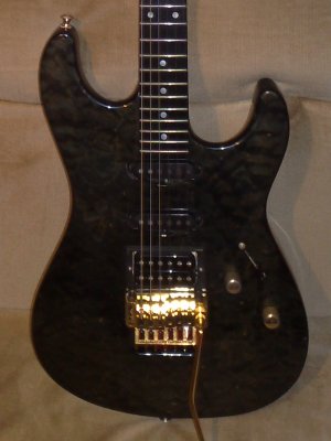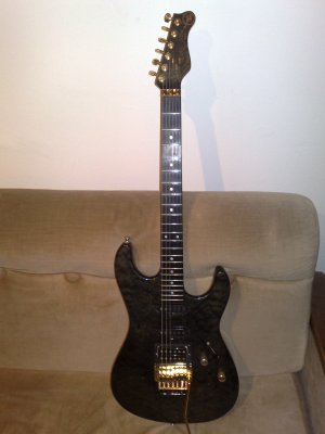 bent S trans black full size 22frets, ebony fretboard, suhr pickups humbucker can't be split to single coil with push pull volume knob and also to that split can't be added neck pickup with tone knob push pull, schaller tremolo, guitar is signed by mr. Steve Lukather on the headstock. Plays and sounds like a dream....