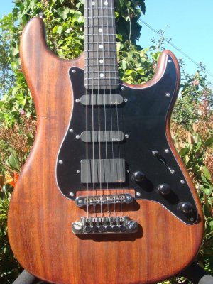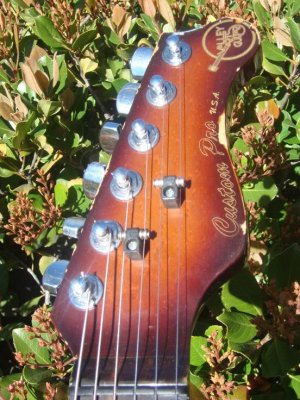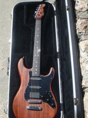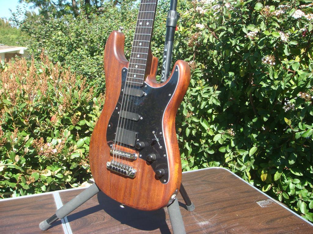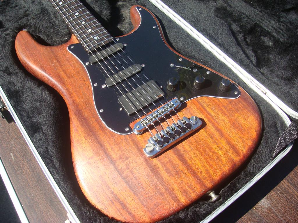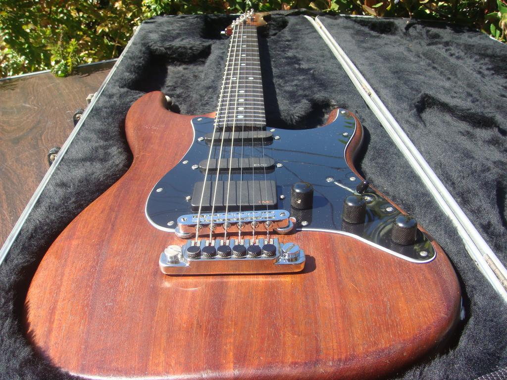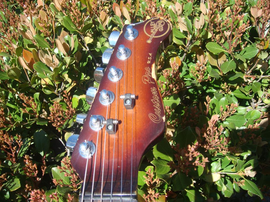 Full scale mahgany body, birdseye maple neck, rosewood fretboard, black pickguard with EMG's (SA, SA, 89), Gibson tunomatic bridge, Chrome Gotoh’s with Valley Arts Logo