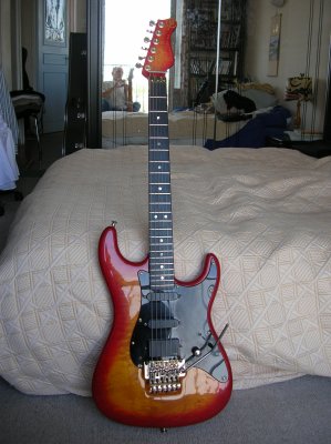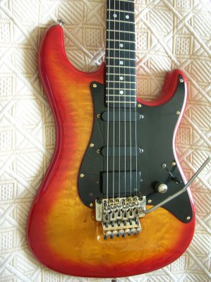 Curly maple, birdseye maple neck with ebony fretboard, EMG pickups, gold hardware