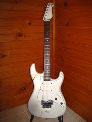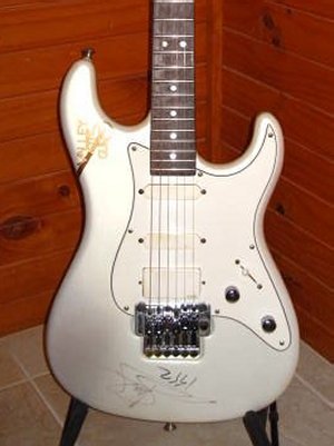 Alder body, 25.5 scale length, Maple Neck, Rosewood Fingerboard, Chrome hardware (double locking), EMG pickups