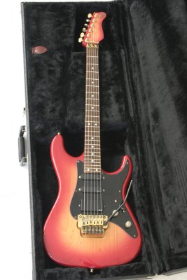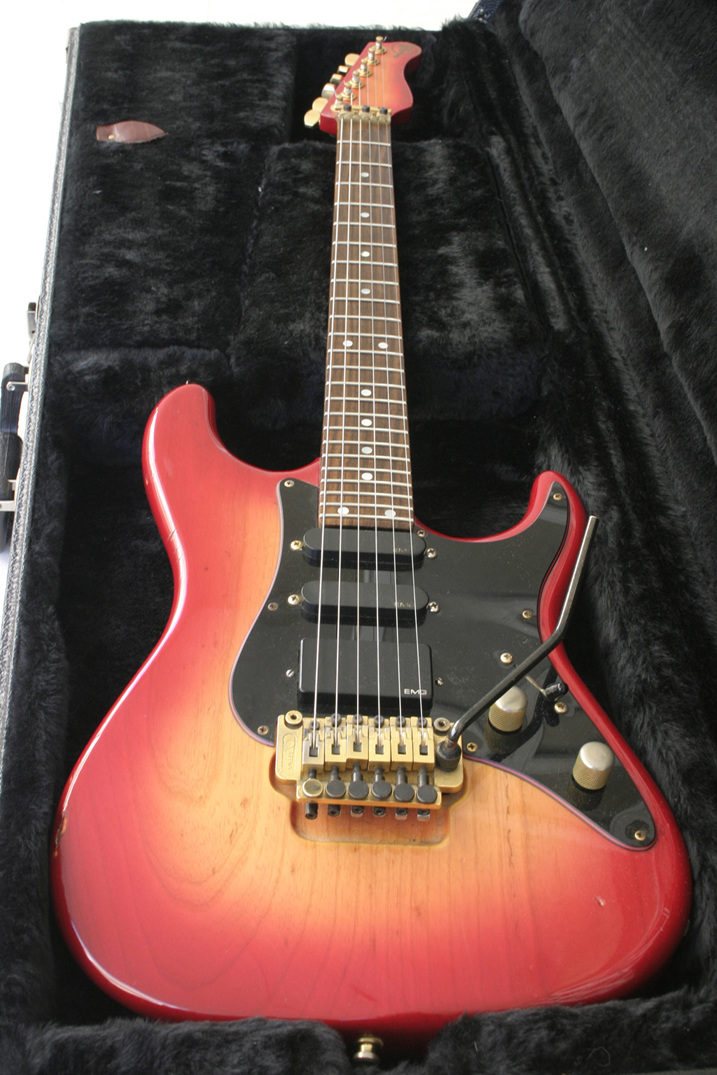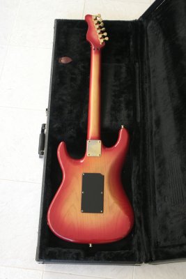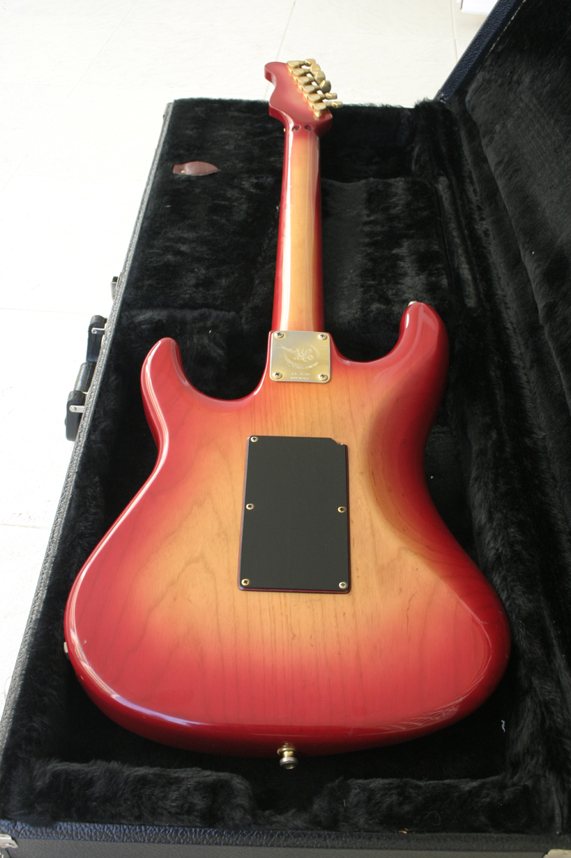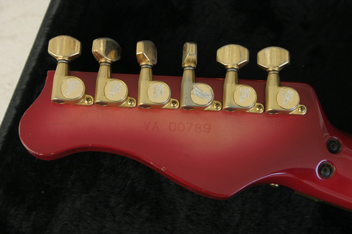 The body is made of 1 piece swamp ash, 7/8's, 24 frets. The neck is one piece birdseye maple with rosewood fingerboard and pearl dot inlays. The pickups are the original factory placed EMGs. There are two knobs, volume and tone. The hardware is gold and THE COLOR is the VA famous Fireburst. This guitar is ALL ORIGINAL. This guitar sounds fantastic. Very sweet highs and very articulate mids. She has the straightest neck that I have ever seen. The neck profile is just perfect. Once you touch this guitar, then you keep on playing forever. I bought this guitar as a replacement of my other VA Lukather's model ( VA 0675 ) which I bought from Martin Miranda in 1990 and I sold it to Bryan May's Band second guitarist Michael Casswell in 1991. I remember he was a VA fanatic, an excellent person and player.