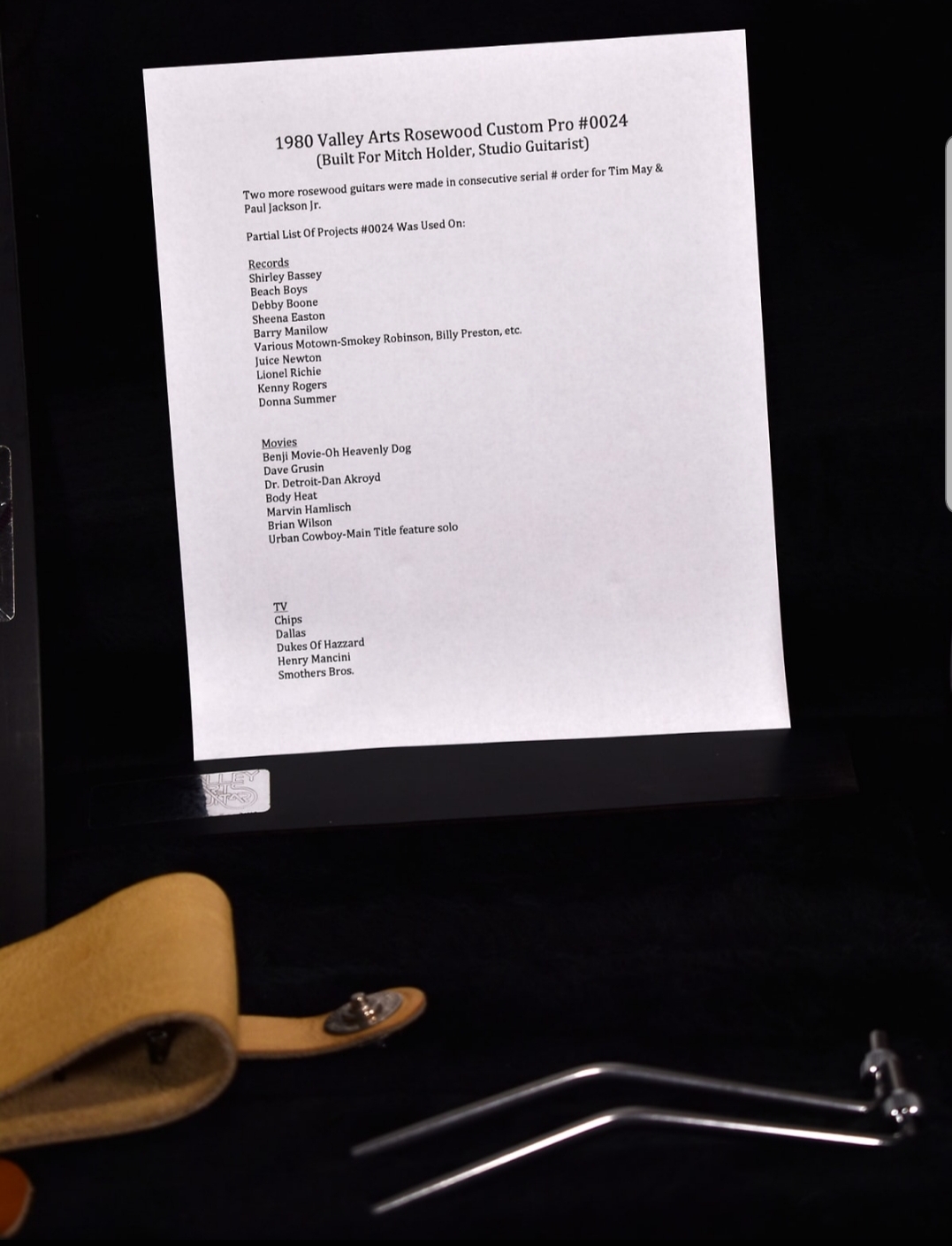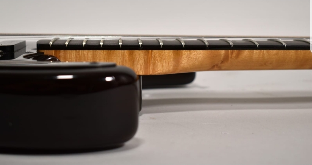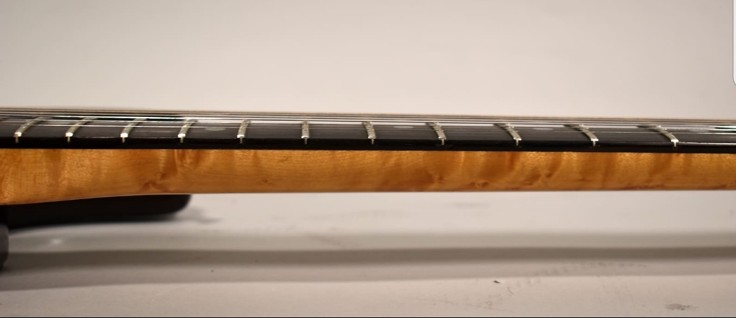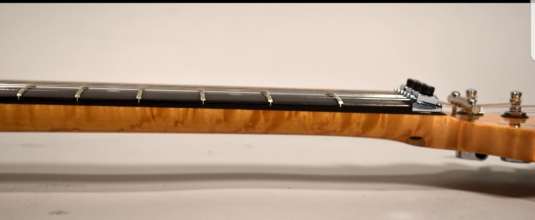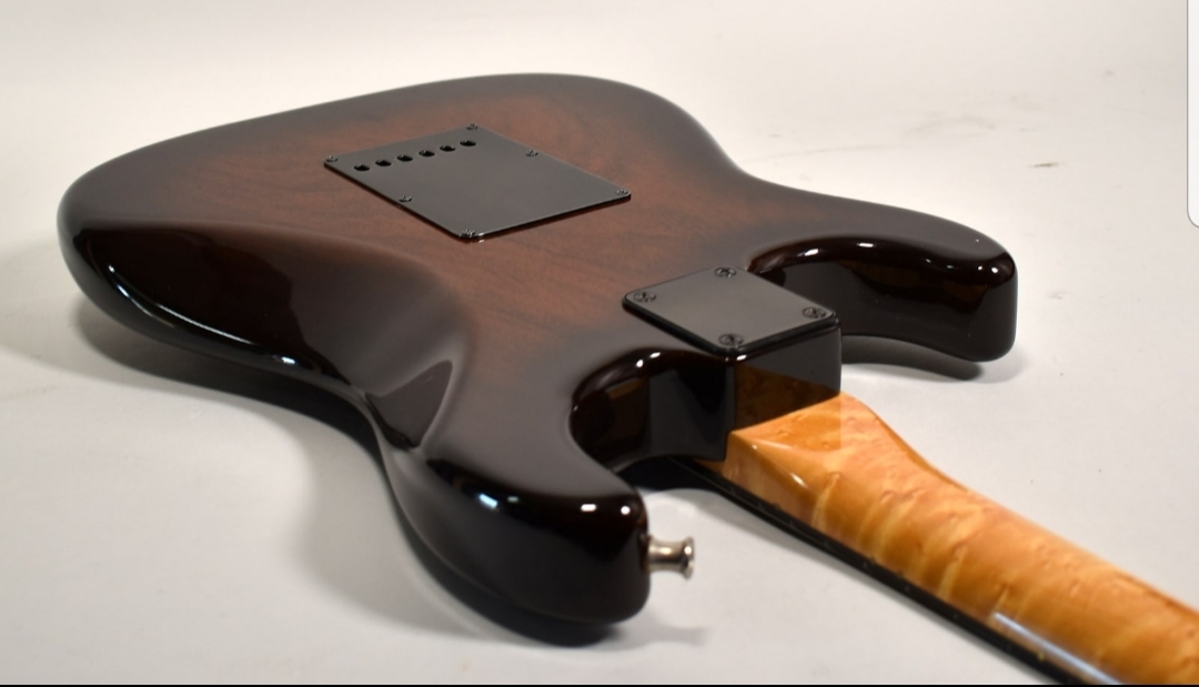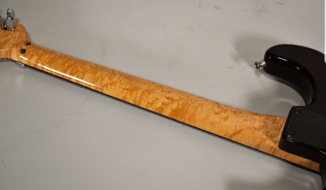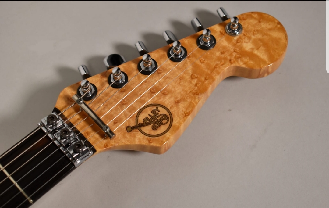 Rosewood Body, birds eye maple neck, ebony fingerboard, Schaller tuners, Passive Seymour Duncan stacks, volume & tone, 3 position switches, on-off-phase, Floyd Rose Trem.