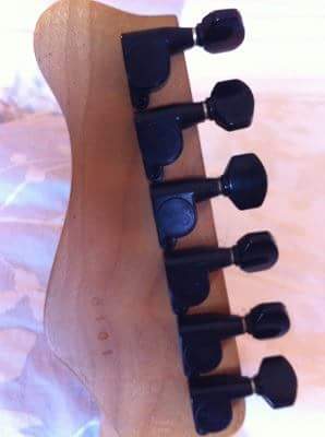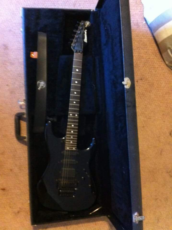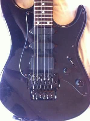 black, black hardware, rosewood fretboard, EMG's, Kahler trem