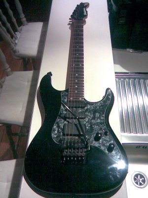 Just like it's brother with SN 0397. Black, 7/8, Floyd Rose bridge etc. I bought the guitar on internet (on a site like ebay) from someone else in Holland. He had a guitarshop replace the original black pickguard with a pearlish one to make it more "exciting". I agreed with him on this, but I made sure that I got the original guard with me, just in case. He had also a custom pro (which I initially searched for). That one was sadfully not for sale. I still want a Custom Pro particularly the Luke model. Cause he's of course the reason I (like everybody) wanted a VA in the first place. But apart from Luke the sound of the standard pro is really outstanding! It's completely in balance and what a sustain. By the way I spoke with Luke! in 2006 when he was touring with El Grupo. He still has his VA's and plays them once in a while. I said that I like the sound of the VA's more then the Musicman. He startled a bit. I added quickly that it doesn't matter on which guitar he's playing. Give the man a Tokai and he still makes it sound good!