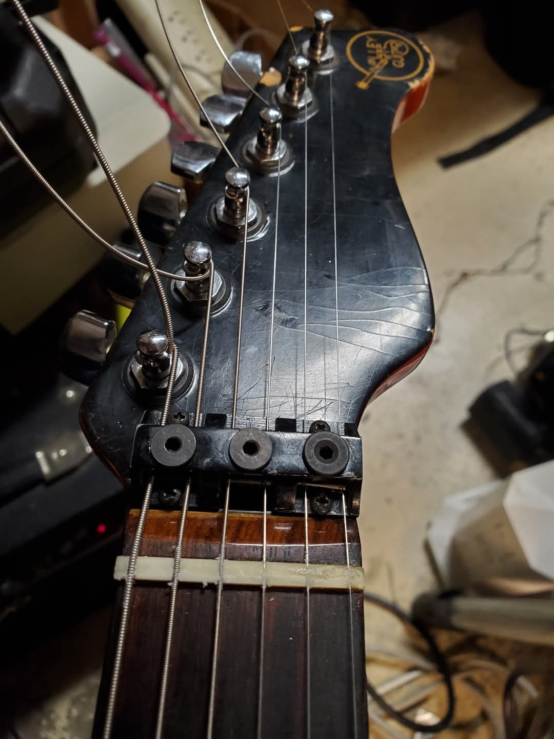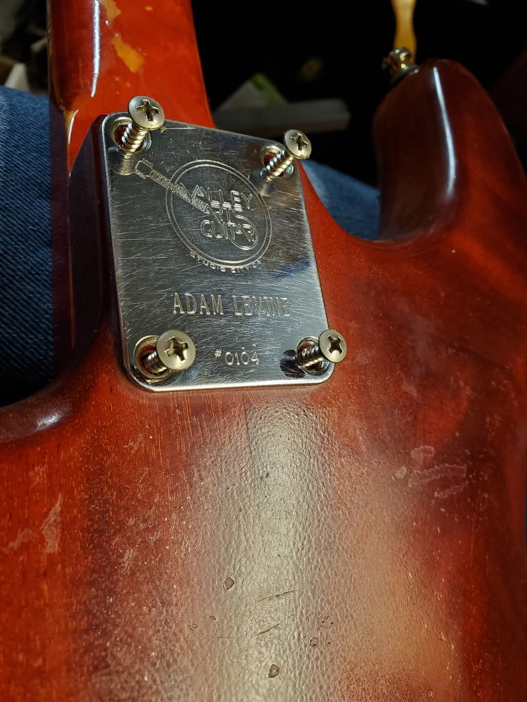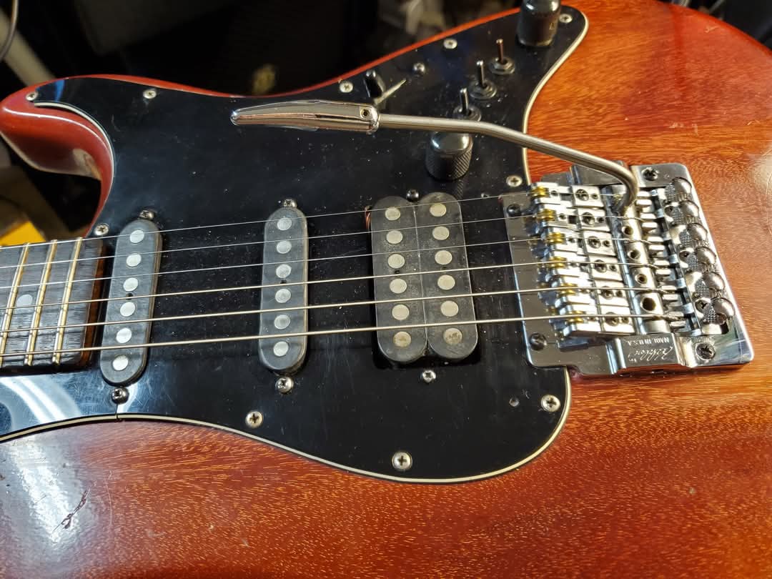 Recently reacquainted with VA Strat #0104 Adam Levine -built at Studio City Store. Circa 1984-85. I recall I had a hand in its initial build 40 years ago upstairs in VA Guitar Repair. Required complete rebuild the Kahler tremolo , new bearings, Truss Rod adjustment , fret polish , apply beeswax/lavender to fretboard ( as was standard at VA) , cleaned electronics Caig DeOxit , restore a full pickguard shield to eliminate strum static crackles - somewhere in its history the pickups were swapped for Tom Anderson stacked humbuckers with three way voice switches. Restrung with 10-52 EB Strings, first Dipped ball ends in super Glue ( the SIT mod) , minor Nut slot cleanup, lubricate with Ivory soap flakes. Ordered a Vintage Kahler Trem bar, nut lock, stretch the strings, Strobe intonate = best original Kahler equipped Guitar I've played.