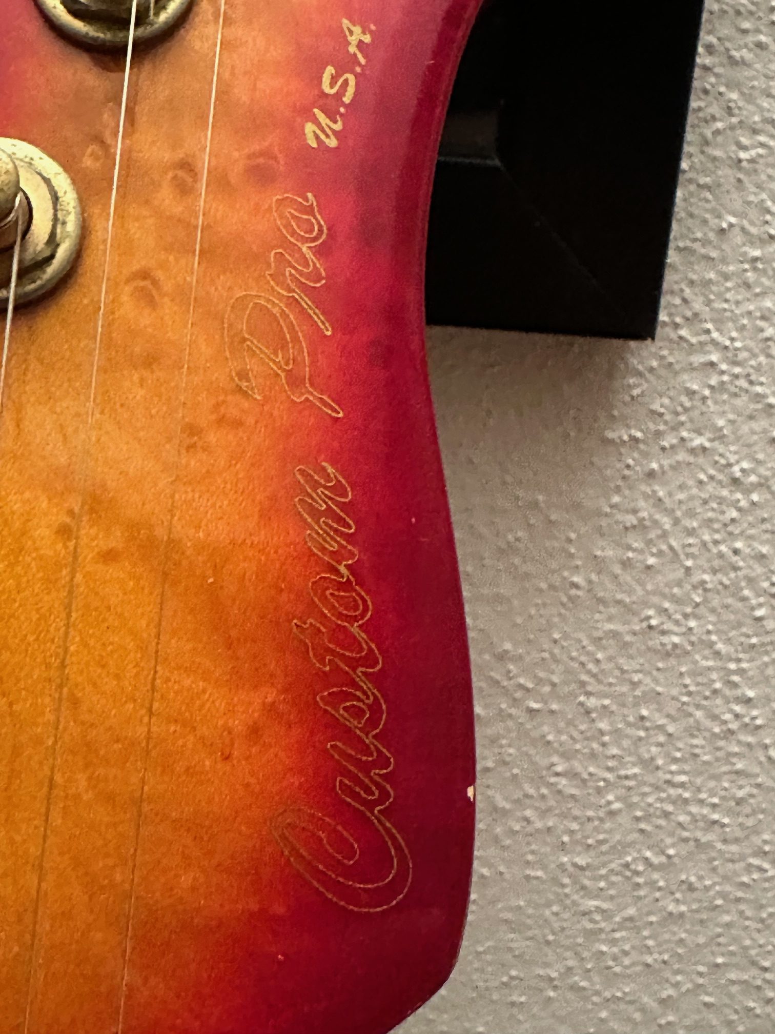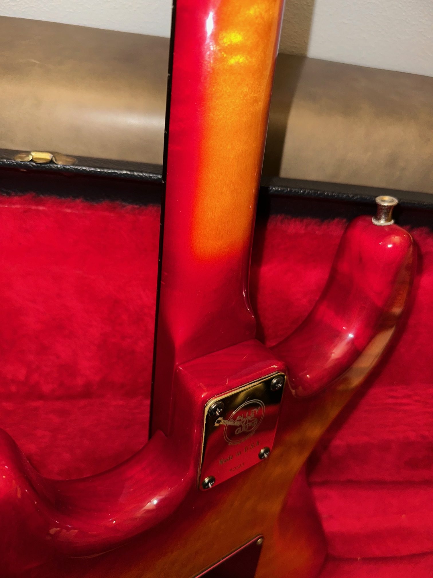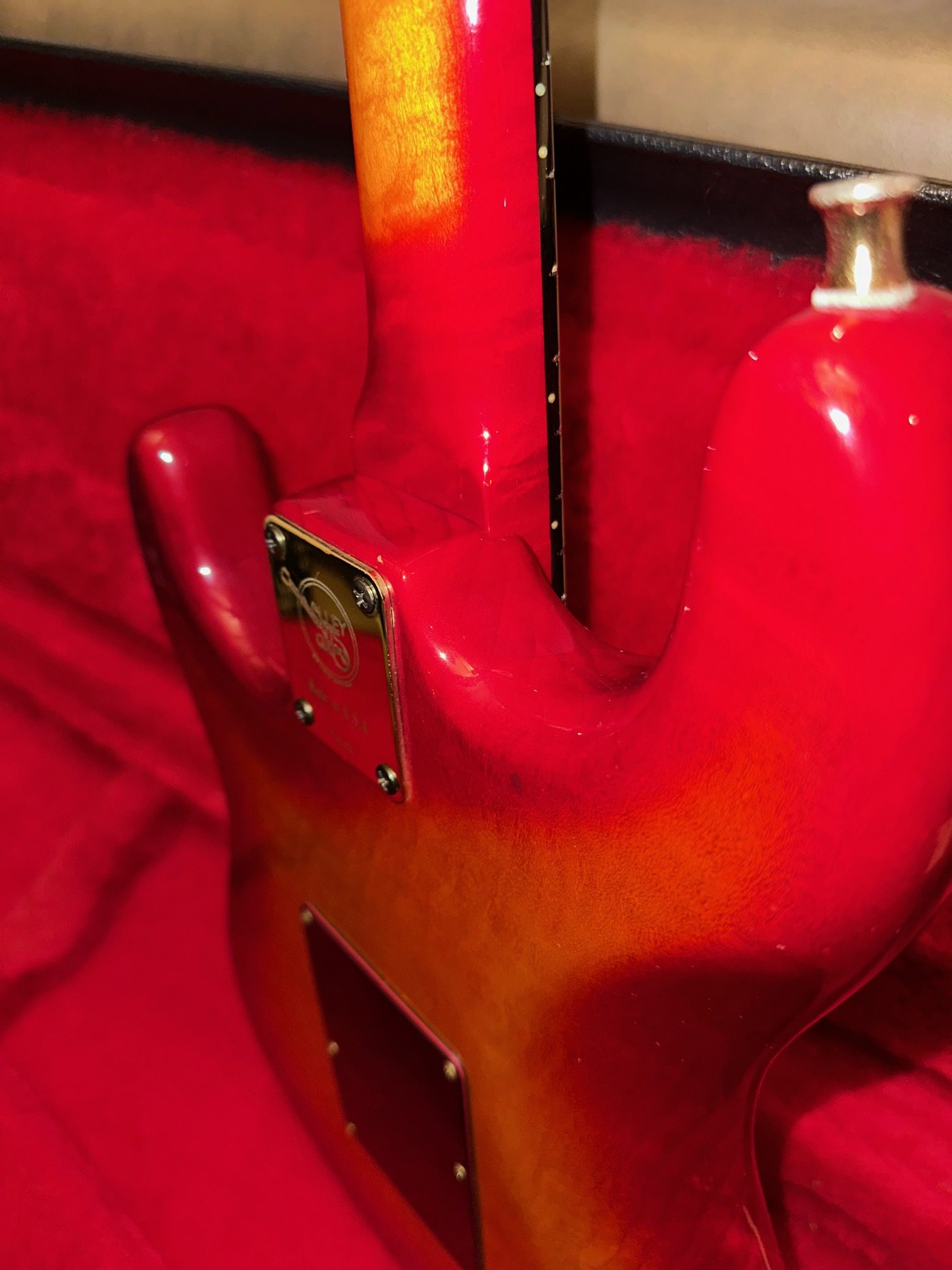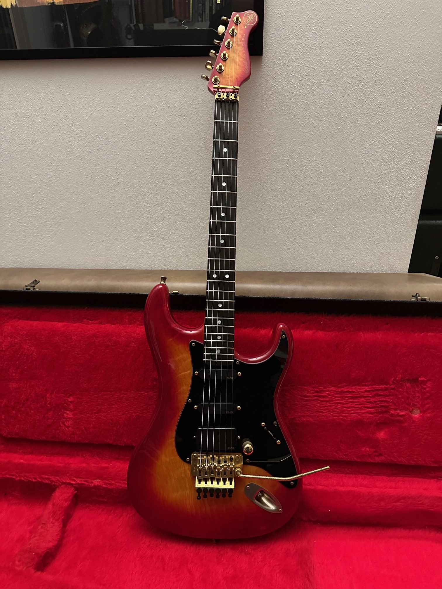 The Guitar is all original, and you can clearly see from the pictures, has the features of early valley arts. Is like the Steve Lukather one. Fireburst, quilted maple body, birdseye neck, gold parts, floyd rose not recessed, EMG 58 and I believe SA singles, single volume knob. I bought from a french guy named Arthur Vere, I don't know the provenance.