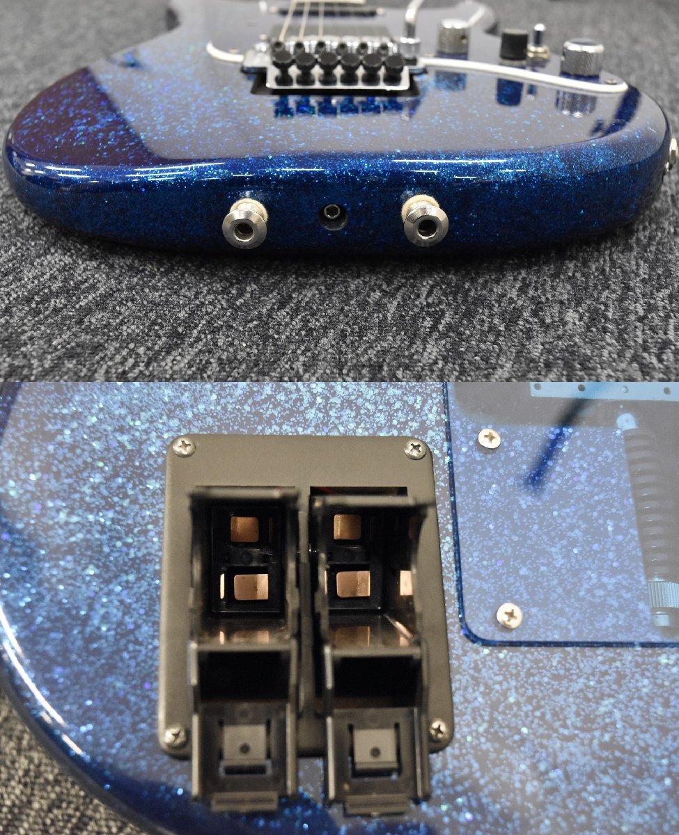 The Guitar is A Custom Pro heavily modified with battery boxes routed in the back and a reverse tremolo spring routed and fitted.