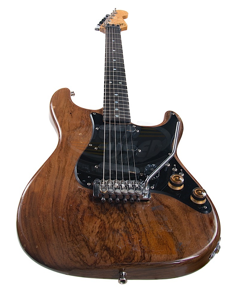 Owner currently unknown - neckplate says Tim May, so it was built for him. Current owner unknown. Strat shaped headstock.