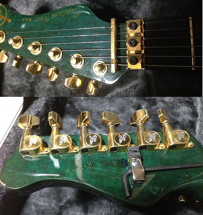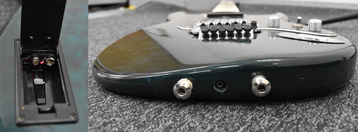 The Guitar is A Custom Pro heavily modified with battery boxes routed in the back and a reverse tremolo spring routed and fitted.