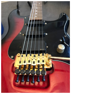 The original Schaller (worn) was replaced with new Floyd Rose parts by Mike Lull. The original trem poles appeared to be from a Kahler setup.