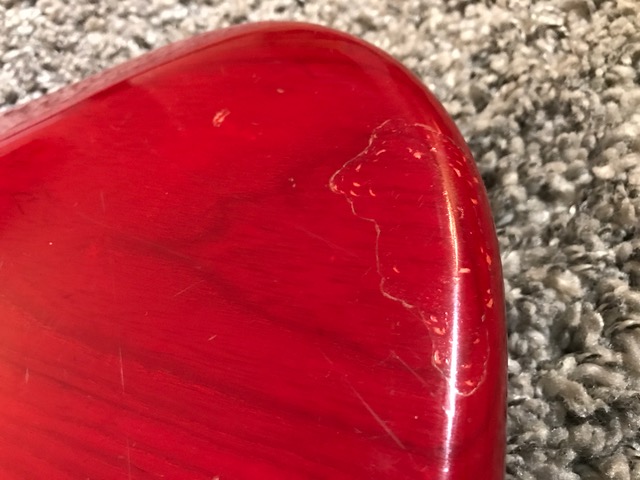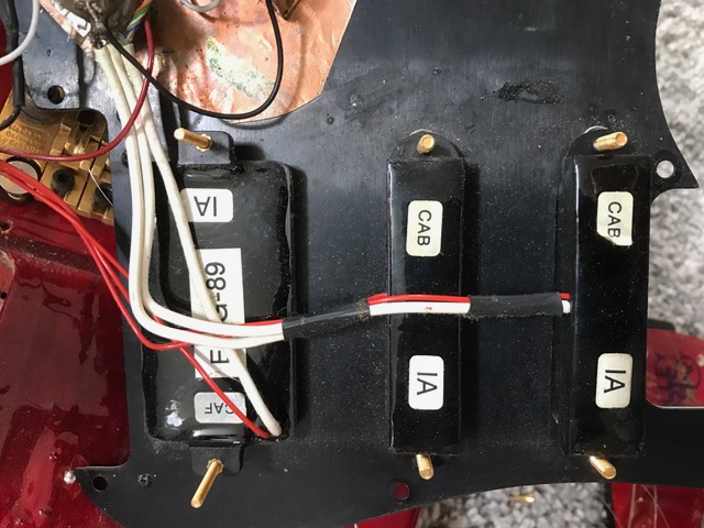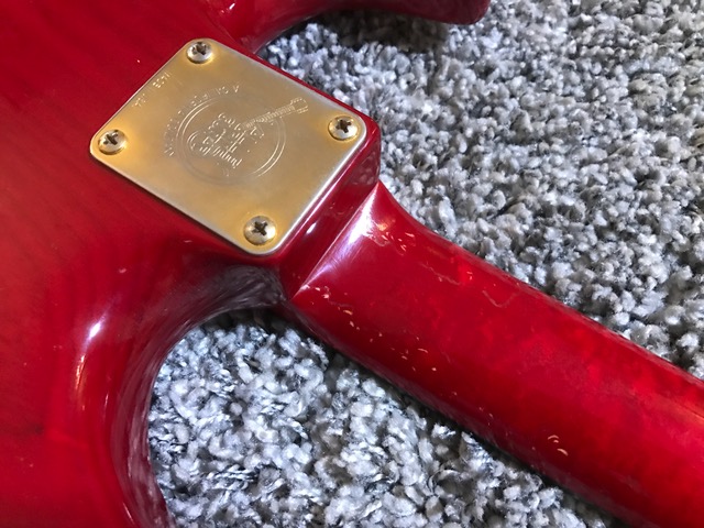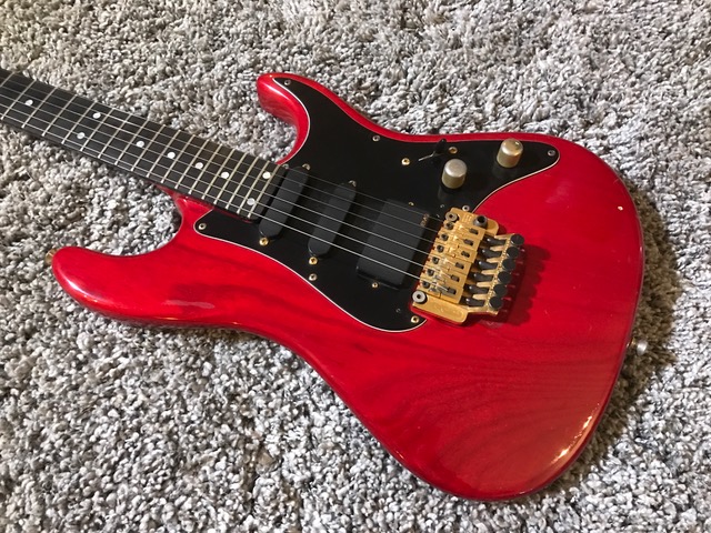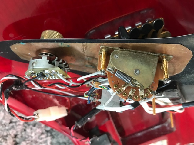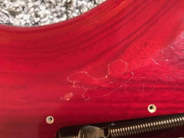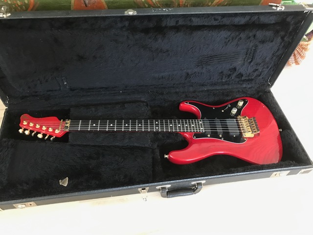 I’ve had a guitar synth mounted on this red one - don’t know what I was thinking off … excuse me!! And it’s definitely used. The lack on the neck and back of the body is worn. I might have the backplate for the trem somewhere, the fretboard guard doesn’t exist anymore. Also has the hardbox for it.