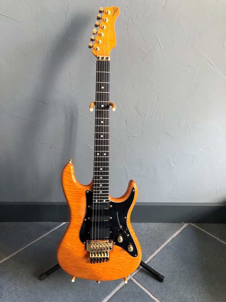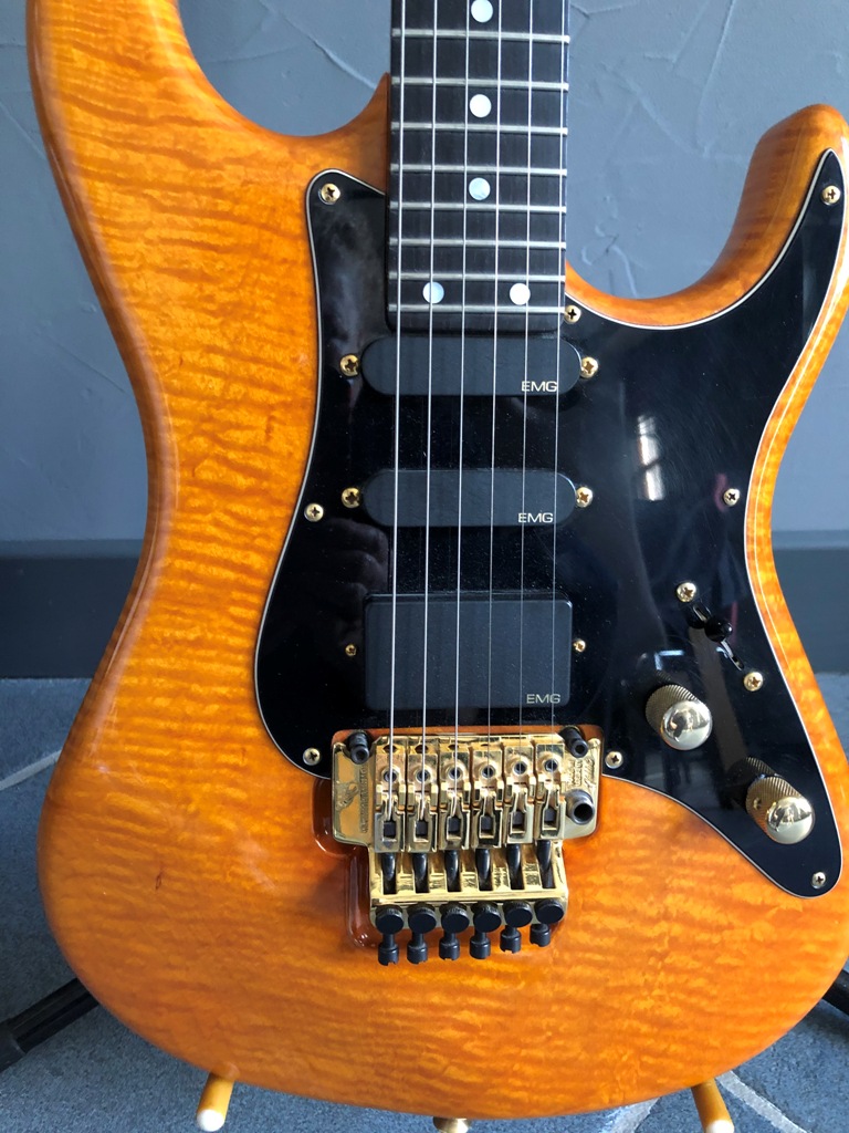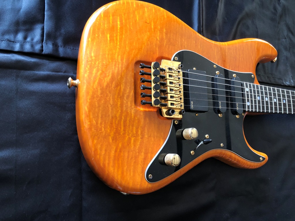 flamed maple body 7/8 body, 24 frets.