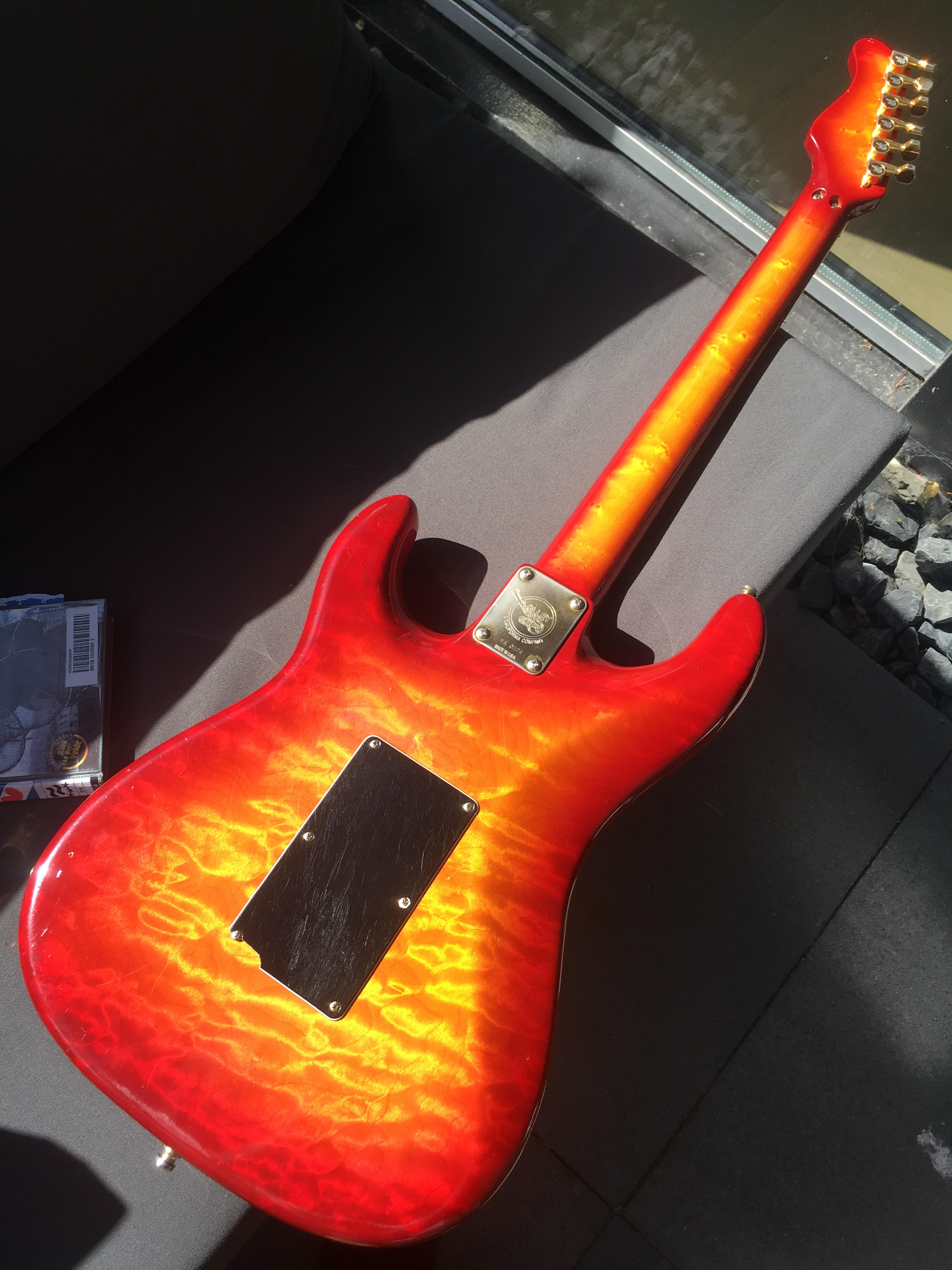 Body : quilted maple , neck : maple with fretboard ebony, original kahler vibrato , HSS Seymour Duncan pickups (sound hell in any position)