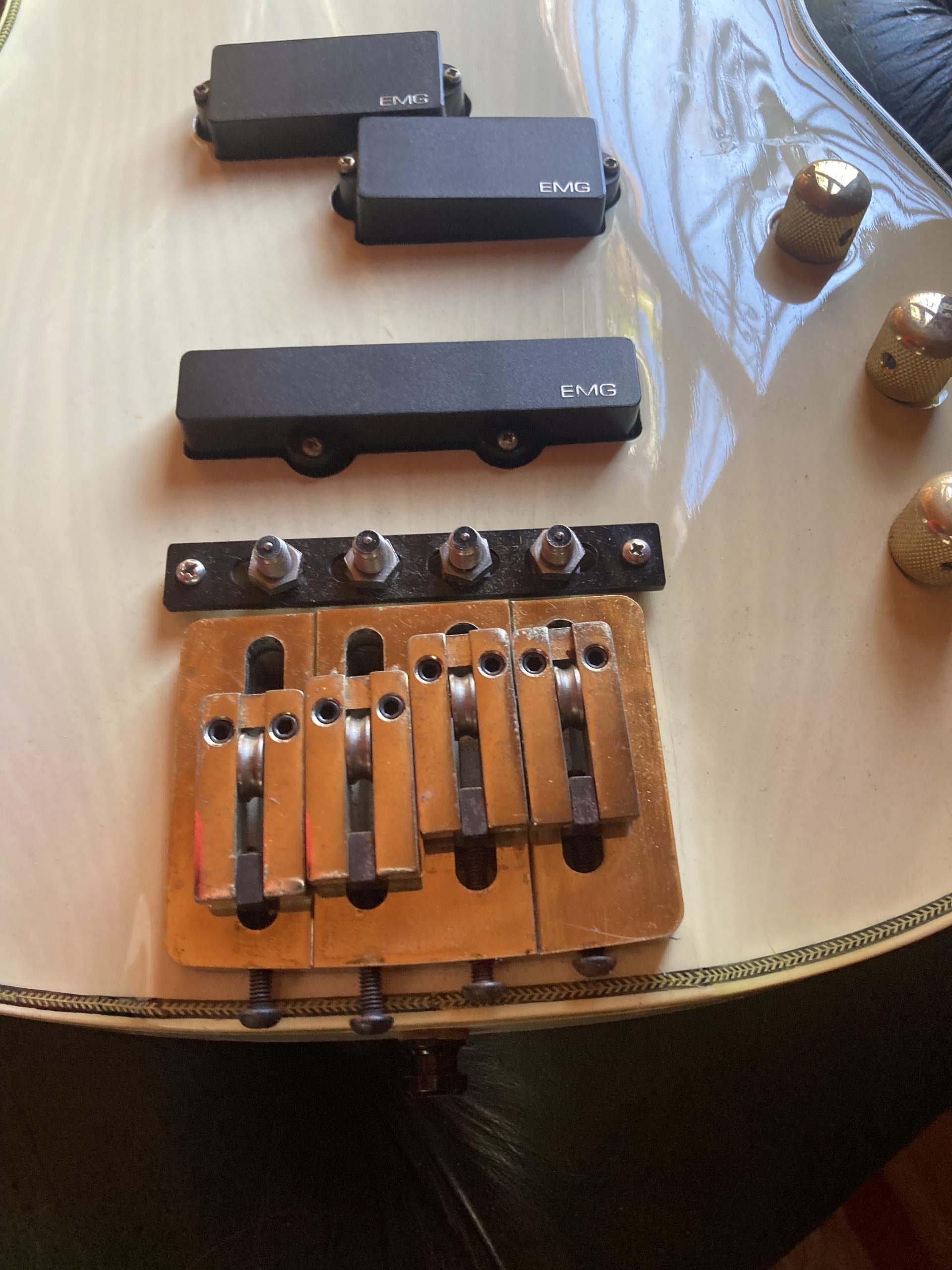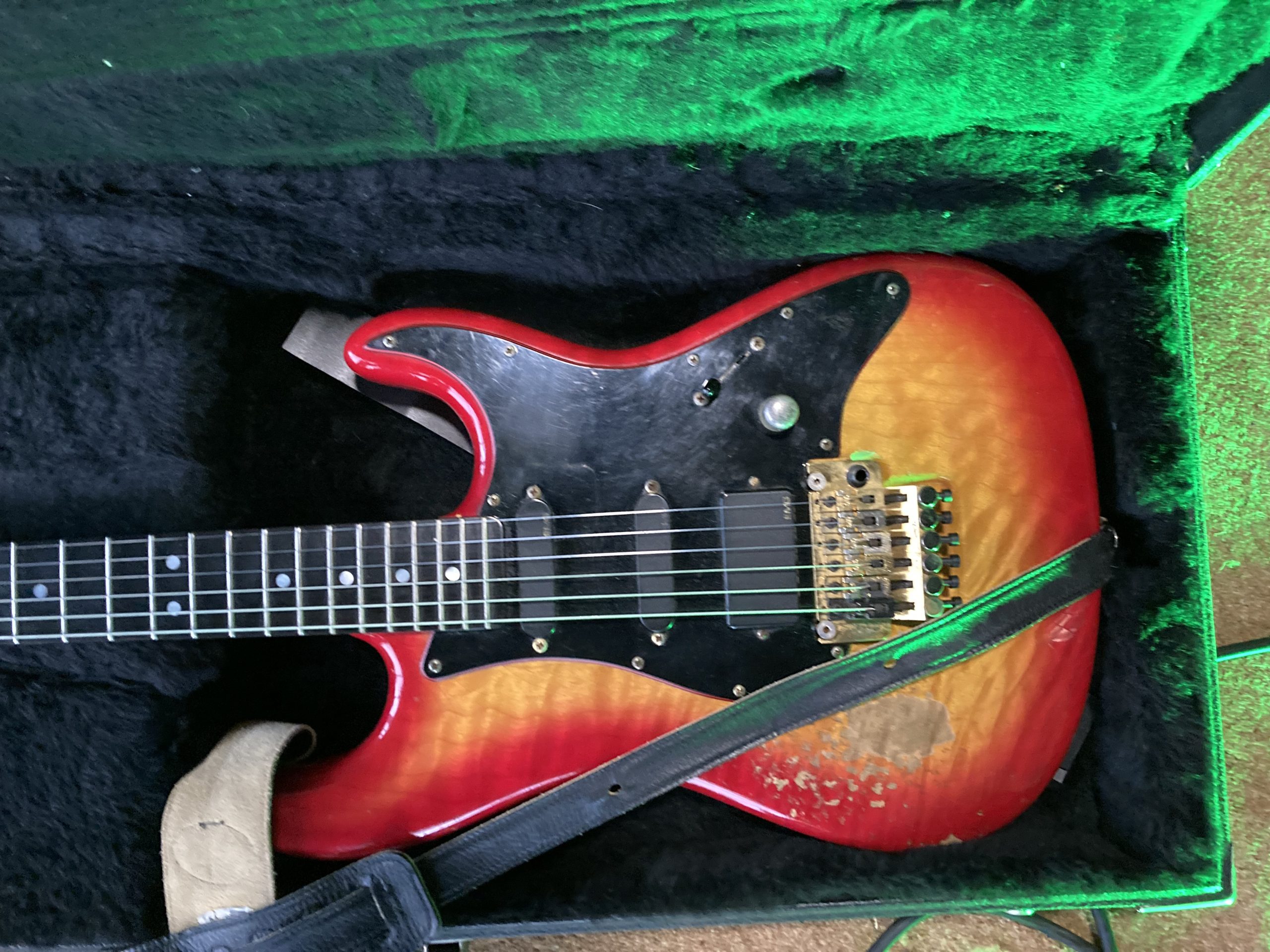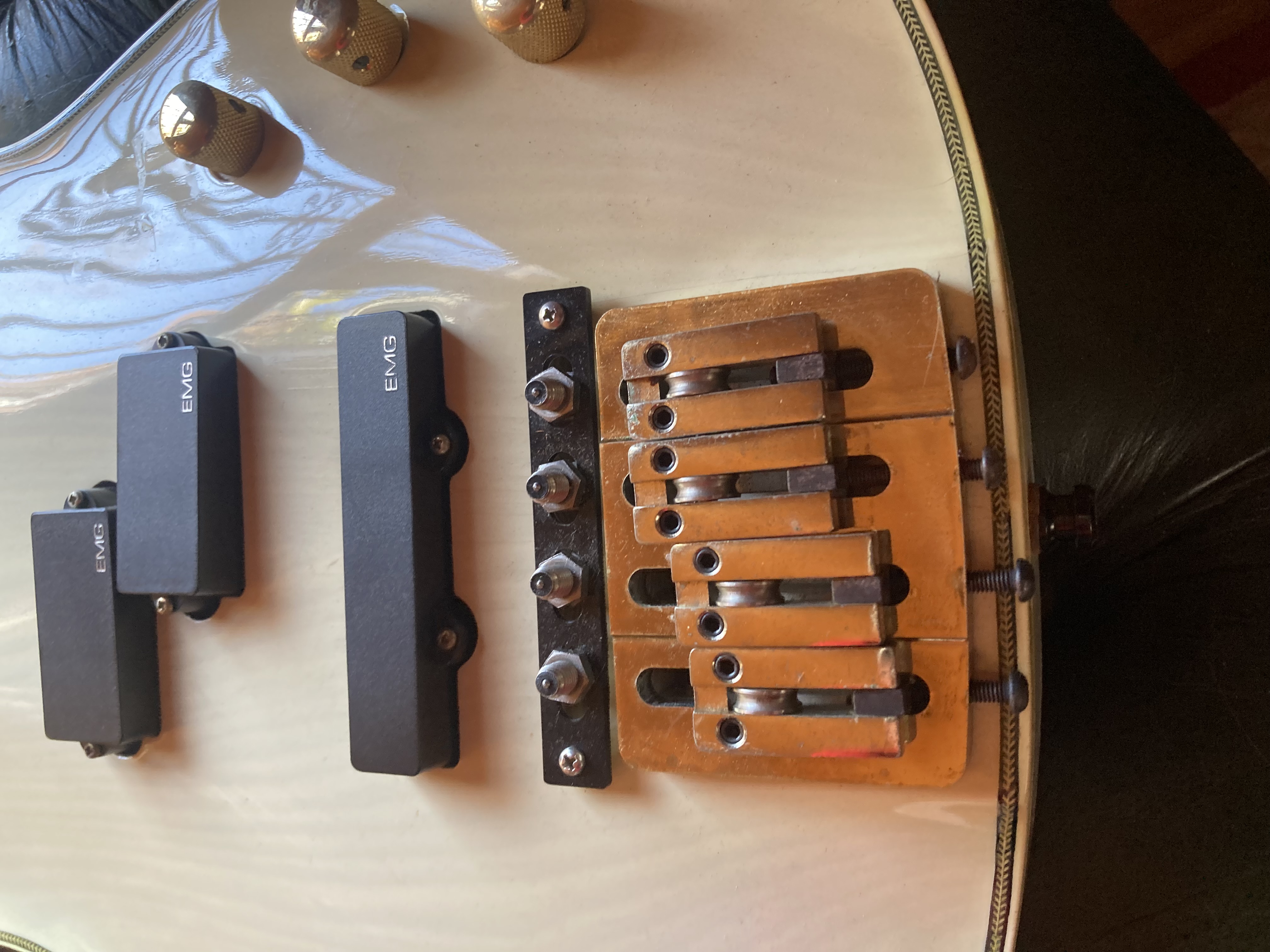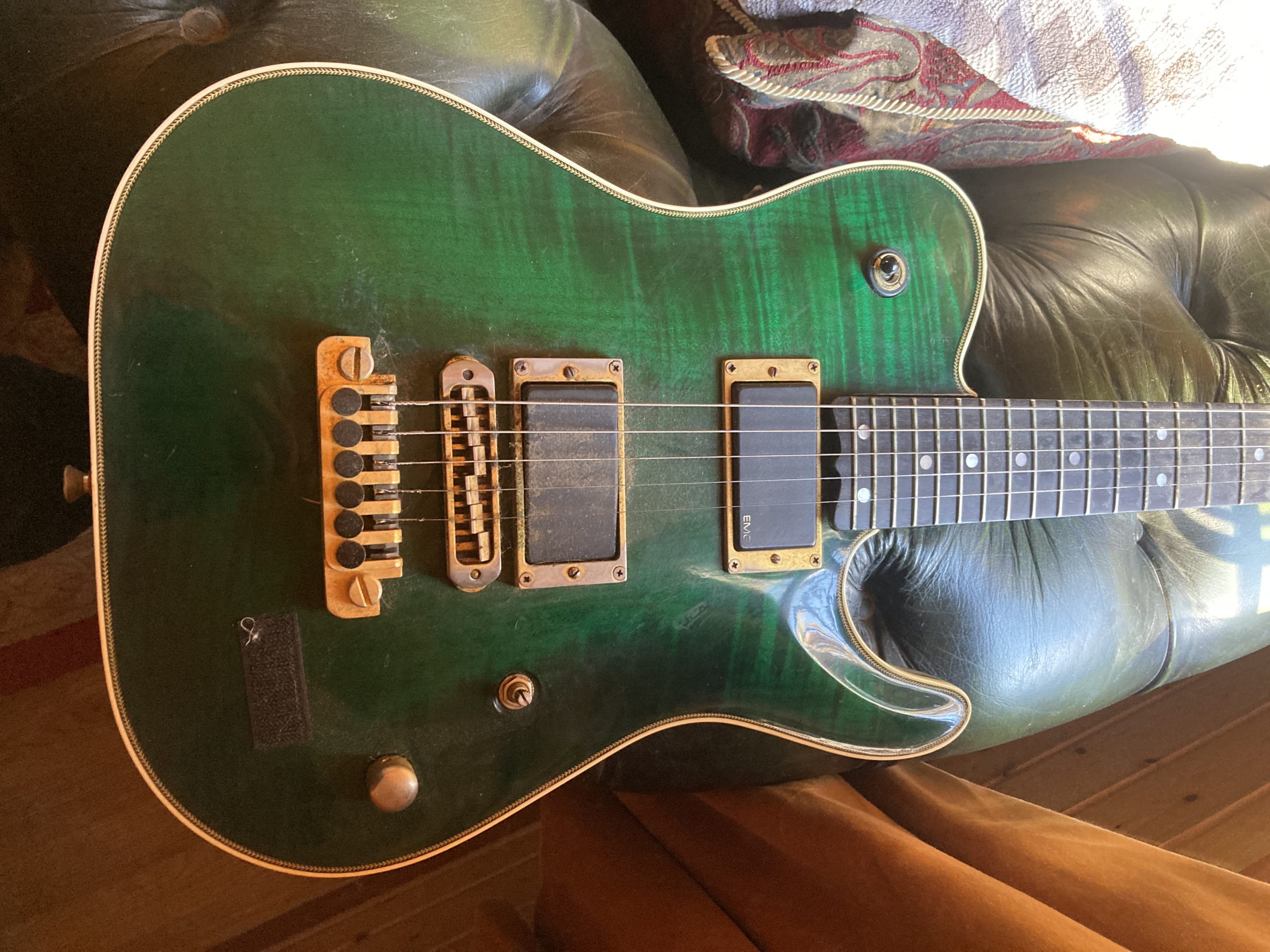 I was working as a tech for Bonham (Jason Bonham) the band were recording an album in LA at the studio One on One (I think it was called) We were all mad Steve Lukather and Jeff Porcaro fans and at that time most Sunday nights they were playing at the Baked Potato so we used to see them play most weeks. So with the Luke connection it was only a matter of time till we were hooked up with Bob Bradshaw and Mike McGuire. The band and I visited the shop and purchase 5 guitars, all Valley arts, 2 Luke’s, 2 M series Telecasters and a custom m series bass (with a midi output) I think it was August 1989 The bass had an Australian MIDI mod, it was a contact between the fret and bridge to negate any MIDI delay (you can see the frets are cut into four to give individual string/bridge contact)