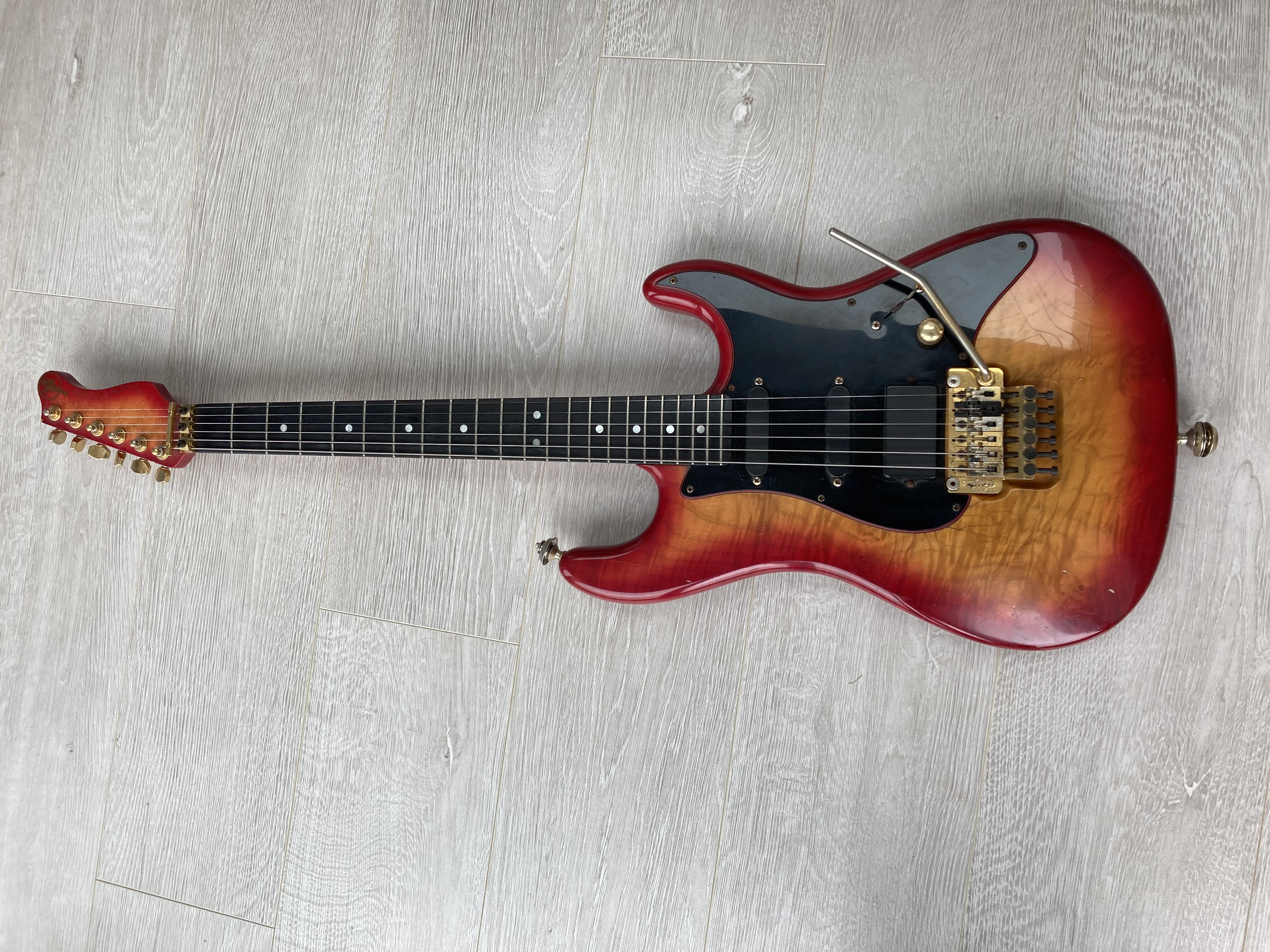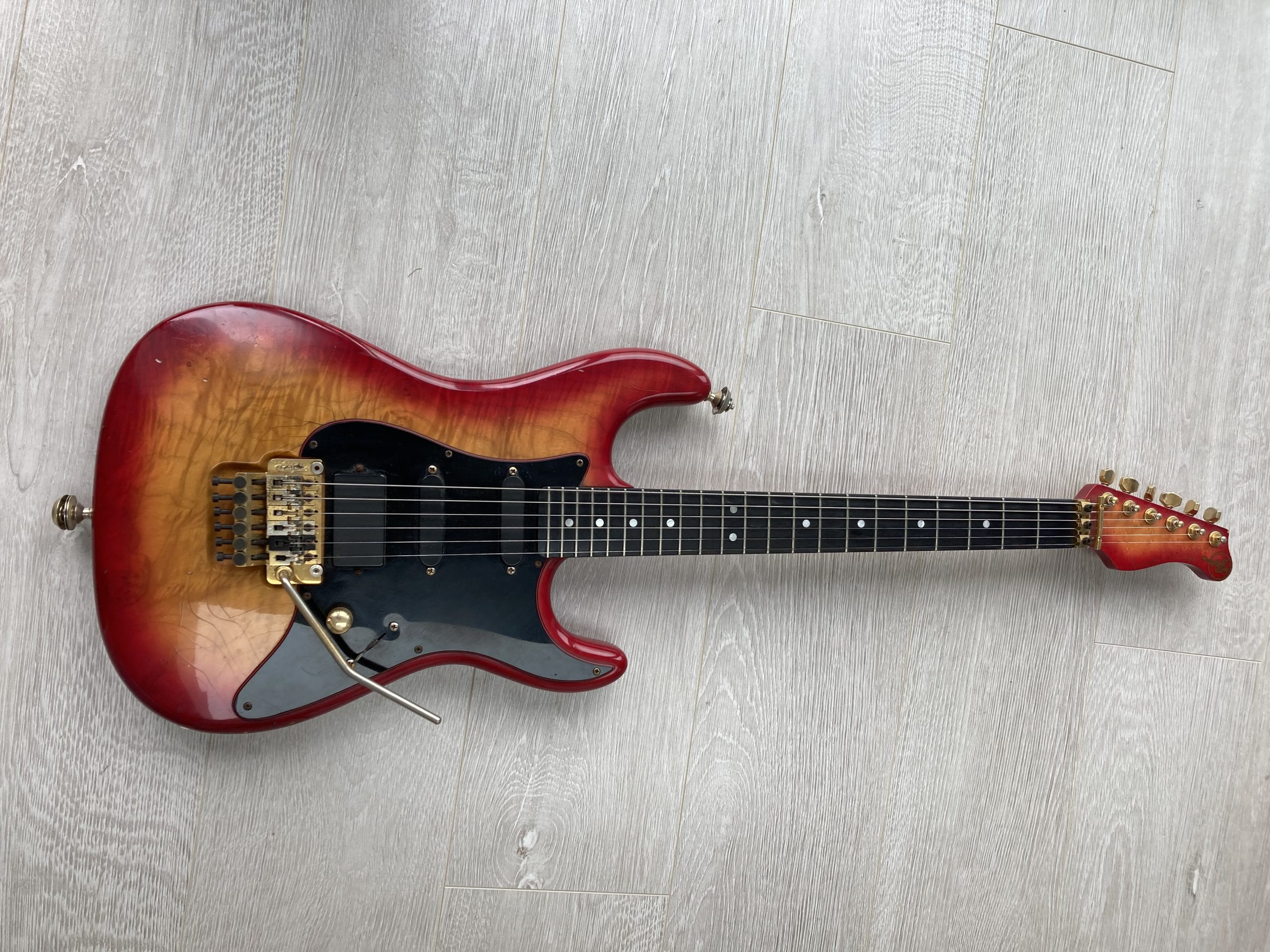 Ian Hatton the guitarist used his Luke as his main guitar, mine was sometimes a bit of a back up. The band and I travel all over the USA and Canada on tour. While in Canada the temperatures were approx -35 degrees F this caused the finish to crackle giving a vintage look early on in its life.