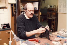 Bob wiring some pickups and Bob and Mike assessing the guitars due to be made - thanks Bill!